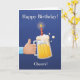 O estilo moderno de desenho animado significa cartão de aniversário feliz de caneca de cerveja. Perfeito para um irmão, primo, amigo, pai, macho, tio, filho. Exclusivo para a marca de placas de elefante verde.