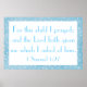 Este poster de bebê é feito com estrelas na fronteira azul com verso bíblia "Para esta criança eu rezei; e o Senhor me deu o que eu lhe pedi. 1 Samuel 1,27"
