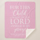 A frase reconfortante "Para esta criança eu rezei, e o Senhor respondeu a minha oração - 1 Samuel 1:27" é lindamente apresentada no cobertor em um design simples, mas elegante. Quer você esteja procurando um presente de chá de fraldas único para um pequeno especial ou procurando algo especial para seu próprio bebê, este cobertor personalizado certamente impressionará.
