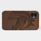 Uma simples capa de telefone para mostrar seu lado amoroso. O caso tem um fundo que se parece com couro áspero com o selo de uma cabeça de cavalo.