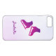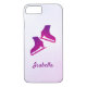 capa de telefone de patinagem de gelo personalizada roxo para patinadores de figuras (meninas e meninos) - para carregar de sua paixão em todos os lugares.Cores: Gradiente roxo a rosa quente sobre fundo de gelo rosado.Design: Par de skates numéricos + personalize com o nome da patinadora de gelo.