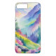 montanhas de aquarela e uma paisagem vibrante de sonho crie arco-íris nesta capa de telefone