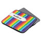 Esta brilhante bolsa de laptop de padrão listrado do arco-íris tem uma faixa branca com detalhes de costura em preto no topo. Ele é personalizado com um nome ou qualquer texto que você queira adicionar.