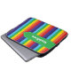 Esta brilhante bolsa de laptop de padrão listrado do arco-íris tem uma faixa verde com detalhes de costura brancos no topo. Ele é personalizado com um nome ou qualquer texto que você queira adicionar.