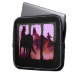 Este design de arte digital apresenta um arredondamento de cavalo selvagem no pôr do sol, emoldurado com uma borda do estilo triptych (3 painéis).