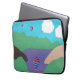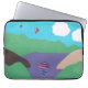 Esta manga de computador foi projetada com uma cena natural de montanhas, e lago azul, e balões de ar quente.