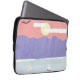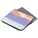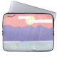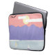 Este cobrir de computador laptop foi projetado com uma representação de montanhas roxas e um mar azul sob um céu solar laranja.