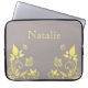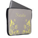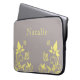 Eletrônicos flóricas de borboletas doces e delicadas com fundo de cinza empoeirado, borboletas amarelas claras e ornamentos de videira floral. Esta elegante bolsa de laptop floral manterá seu dispositivo protegido com um traço de talento feminino! Fácil de personalizar, basta adicionar o texto personalizado de sua escolha nos campos de texto fornecidos. Clique no botão "Personalizar a TI" para encontrar opções adicionais de personalização.