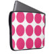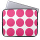 Bonita e moderna Bolsa de laptop de Bolinhas grandes. Este design apresenta bolinhas circulares grandes de tamanho superior em cor-de-rosa e branco. O texto pode ser adicionado a esta design para lhe dar um toque pessoal.