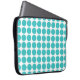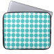 Bolsa de laptop de Mini Bolinhas, bonita e moderna. Este design apresenta pequenas bolinhas circulares em azul-turquesa e branco. O texto pode ser adicionado a esta design para lhe dar um toque pessoal.