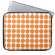 Bolsa de laptop de Mini Bolinhas, bonita e moderna. Este design apresenta pequenas bolinhas circulares em laranja e branco. O texto pode ser adicionado a esta design para lhe dar um toque pessoal.
