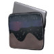 Esta manga de computador foi projetada com uma representação de montanhas, estrelas e uma aurora.