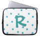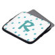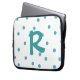 Monograma Whimsical com manga superior feita em branco, com bolinhas aquamarinas. Um grande aquamarino, um monograma de uma letra, no meio do caso. Personalize a carta para si mesmo ou como uma bela ideia de presente.