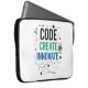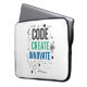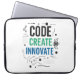 "Guarda seu hub de criação com esta manga de temas inovadores com 'CRIO DE CÓDIGOS INNOVATE' e padrões binários - o neoprene de nível militar absorve choques enquanto alimenta as viagens de criadores. Resistente à água + ajustados de 13-16" com base antiderrapante. Essencial para desenvolvedores e inovadores de hardware. **Proteja seu workshop digital hoje mesmo!**"