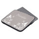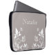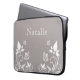 Eletrônicos borboletas doces e delicadas com Capa de palha, com fundo de cinza empoeirado, borboletas de marfim e ornamentos de videira floral. Esta elegante bolsa de laptop floral manterá seu dispositivo protegido com um traço de talento feminino! Fácil de personalizar, basta adicionar o texto personalizado de sua escolha nos campos de texto fornecidos. Clique no botão "Personalizar a TI" para encontrar opções adicionais de personalização.