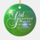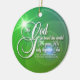 Capitulação bonita da escritura, John3: 16. Roteiro branco sobre verde e azul, com cruz da estrela de ardência. Feliz Natal na parte traseira, com texto customizável.  Espalhe uma palavra pequena ao redor.