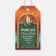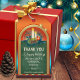Uma etiqueta de presente com um quadro verde com velas e ornamentos festivos de Natal. Bonita como etiqueta de presente de Obrigado para um professor para os Feriados.