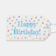 Etiqueta de regalo motivos coloridos con mensaje "Happy Birthday". // 'Happy Birthday' crayon-themed gift tag.
