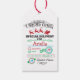 Etiqueta de presente bonita e colorida de Papais noeis apresenta Papais noeis e suas renas e selos de natal.
