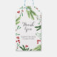 VG Convida a etiqueta de verde de Natal que contém verde verde verde e bagas de inverno vermelhas que enquadram seu obrigado em detalhes. Uma cor verde elogiosa enfeita a parte de trás das etiquetas favoritas. Uma escolha rústica mas sofisticada para chás de fraldas, chás de panela ou casamentos de Natal e inverno. Projetado por Victoria. Para mais informações, visite www.zazzle.com/vginvites