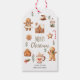 Etiqueta de Natal personalizada com ilustrações de biscoitos de Natal com folhagem e doces de Natal. Etiqueta de presente de Natal. Todo texto é personalizável.