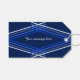 Etiqueta de presente de aniversário em forma geométrica azul.