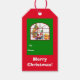 Etiqueta de presentes personalizada com Papais noeis e presentes.