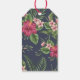 Design de padrão uniforme clássico e elegante feito de flores e folhas de Hibiscus sobre fundo escuro com 4 tags quadradas para seus textos. Design na etiqueta de presente com texto para a 60ª festa de aniversário a personalizar. Você pode facilmente alterar o texto (fonte, cor, tamanho e posição), alterar a transparência das marcas (copiar ou excluir uma delas) e alterar o tamanho e a posição da imagem de fundo clicando no botão personalizar ou personalizável. Chapas de papel de aniversário correspondentes e outros produtos.