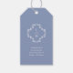 Chic com elegância jovem. Esta suja etiqueta de presente de casamento azul e branco exumenta um tom fresco, moderno e jovem. O design apresenta um adorável monograma elegante de casal floral, contra um fundo branco azul empoeirado e o seu obrigado de texto. Correspondência perfeita para todos os outros itens na coleção.