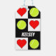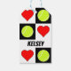Nome personalizado ou Etiqueta de presentes de texto do Tênis Player: Etiquetas de presentes bonitas e personalizáveis para adicionar um toque especial a presentes para jogadores, treinadores, ventiladores ou equipes de tênis! Um padrão sem falhas em preto e branco com bolas de tênis nos quadrados pretos, corações vermelhos brilhantes nos quadrados brancos e uma caixa de texto personalizada onde você pode digitar qualquer nome de jogador, nome de equipe ou qualquer outro texto!