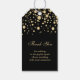 Ouro confetti sobre fundo negro Casamento Obrigado Etiqueta de presente