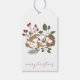 Uma rústica e delicada floresta de cor-d-água dormindo raposa com etiqueta de presente. Uma etiqueta de presente de feriado bonito e neutra.