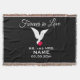 Este cobertor do Forever in Love apresenta um belo carregando de pomba branca, um coração, e um texto personalizável que foi colocado sobre um fundo preto. As três últimas linhas no cobertor podem ser personalizadas com suas informações de casamento.
