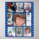 Este poster é projetado para homenagear a memória de alguém em uma Cerimônia de Memória ou para ser exibido em sua casa. As fotos são configuradas como um modelo a ser substituído por fotos da pessoa que está sendo lembrada. "Em Memória Amorosa" está no topo. Um desenho circular branco em um fundo azul margeia as laterais do poster. Se precisar de ajuda para personalizar, por favor entre em contato.