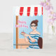 Menina moderna celebrando no cartão de aniversário estilo. Perfeito para uma prima, filha, fêmea, amiga, neta, sobrinha, irmã, namorada. Design exclusivo para a marca de placas de elefante verdes.