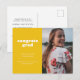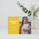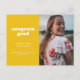 Anuncie a grande conquista do seu formando com este anúncio e convite de graduação simples, mas na moda. Ele apresenta as palavras "felicats formando" em uma fonte branca com estilo retrorreflector em um fundo amarelo, assim como espaço para uma foto na frente. Use o cartão postal para obter detalhes sobre a celebração do seu formando.