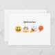Diga em emojis! Envie um cartão postal personalizado de “parabéns”. O cartão postal pode ser personalizado com um nome. O "@" antes do nome mantém a linha com as redes sociais enquanto os emojis dizem “parabéns”.