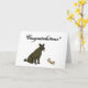 o cão com um osso de cão com palavras que diz parabéns em seu membro da família novo faz um cartão agradável.