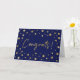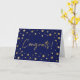 Belo cartão azul marinho com "Parabéns" em uma folha de ouro falso com estrelas. Texto totalmente personalizável na dentro da placa para sentimentos e seu nome. Todos os designs criados pelo Striped Hat Studio.