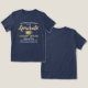 Deseje parabéns ao formando com uma camisa personalizada de graduação feminina na moda. Toda a redação nesta modelo é simples de personalizar com um nome, ano de aula e escola, e espaço adicional opcional para uma citação inspiracional, ditado motivacional ou outro texto. O design azul-marinho, branco e ouro apresenta um boné conselho de argamassa, elegante caligrafia moderna e tipografia na moda-clássica. Observe que o ouro é impresso a cor, não a folha metálica. Esta camiseta faz uma legal ideia para uma cerimônia ou festa de formatura de início. Parabéns ao formando!