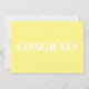 Parabéns, Parabéns, Cartão de Nota branco branco-claro-amarelo-claro. Elegante, design moderna.