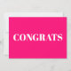 Parabéns, Parabéns, Cartão de Nota Branca Branca de Fúchsia rosa-quente. Elegante, design moderna.