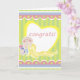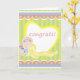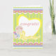 Cartões adoráveis para enviar aos novos pais para felicitar o novo bebê ou a menina. Um fundo listrado amarelo bonito com bordas cor-de-rosa, um coração, e um bebê de desenho animado segurando uma garrafa são apresentados nessas cartas personalizáveis para os novos pais. Estas bonitas cartas de parabéns são perfeitas para meninas e meninos.