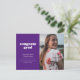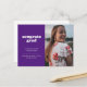 Anuncie a grande conquista do seu formando com este anúncio e convite de graduação simples, mas na moda. Ele apresenta as palavras "felicats formando" em uma fonte branca com estilo retrorreflector em um fundo roxo, assim como espaço para uma foto na frente. Use o cartão postal para obter detalhes sobre a celebração do seu formando.