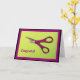 Uma tesoura roxa cortando o papel verde é o assunto da minha placa de parabéns "Parabéns - Você é um Cortado Acima do Resto".