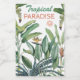 Floresta tropical fantasiosa com bananeira, folhas verdes da selva e pássaro floral do paraíso em fundo branco. Você pode alterar a cor do plano de fundo clicando no botão "Personalizar" e, em seguida, na inscrição "Clique para personalizar mais".