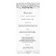 Cartão de menu de festa de aniversário. Personalize e adicione um nome, idade, data e menu. Um fundo branco na frente, decorado com faíscas de brilho. Letras pretas coloridas. Fundo: falso fundo prateado que faux brilha.
