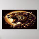 Um leopardo feroz, rosnado em preto, castanho e ouro. Impressionante como arte de parede para sua casa ou escritório.