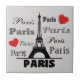 Ilustração de design de texto de Paris com Torre Eiffel e decoração de corações vermelhos. É possível mudar a cor de fundo e adicionar uma diferente à design com sua escolha.
