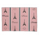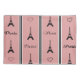 Ilustração Paris com Torre Eiffel e decoração cardíaca e design de texto de Paris sobre fundo listrado preto, branco e rosa